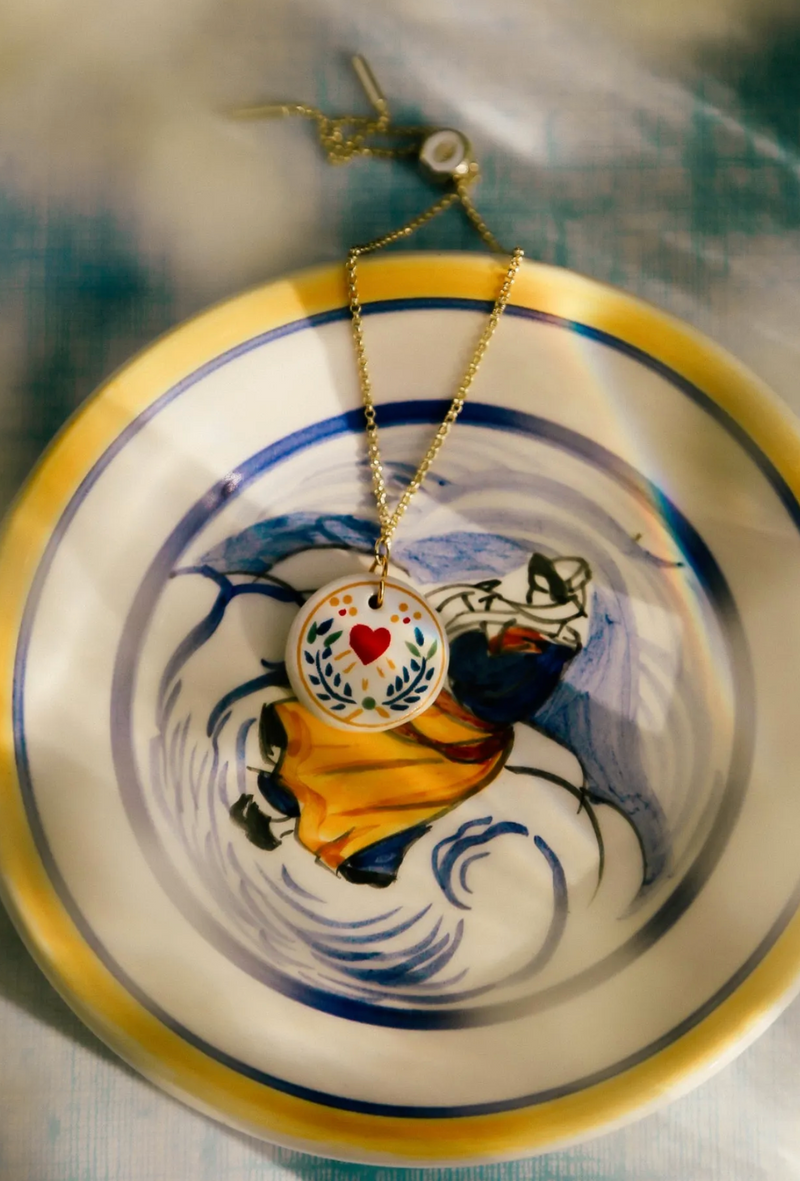 Décaler le regard, un art de vivre chez Amour Breton et Armeria Bijoux ! Agathe, la créatrice d’Armeria nous a donné carte blanche pour dessiner des motifs colorés, inspirés des faïences bretonnes. Pour en faire des médaillons qui se déclinent en colliers, boucles d’oreilles et bracelets. Comme si l’on portait sur soi, les souvenirs gourmands de notre enfance. Une célébration de l’art de la table, une invitation à porter la gourmandise et les joies des plaisirs partager.